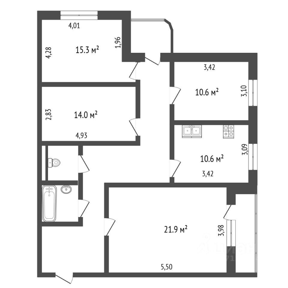 Площадь кухни10,6 м²