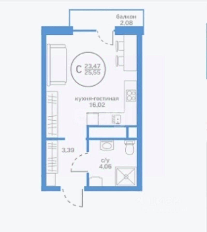 25,55 м²