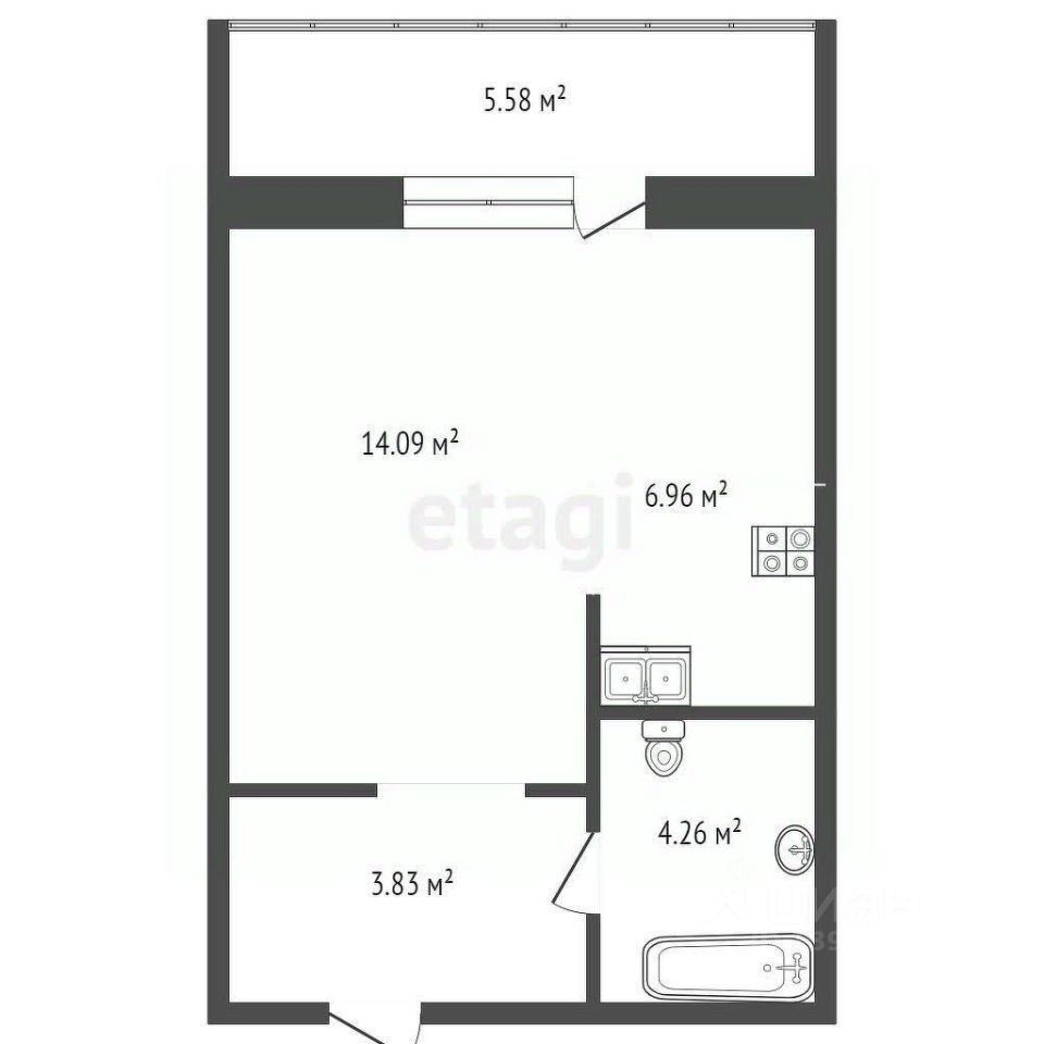 Продается просторная студия 28.2м² с большой лоджией, через дорогу от Сити-Мола!!!