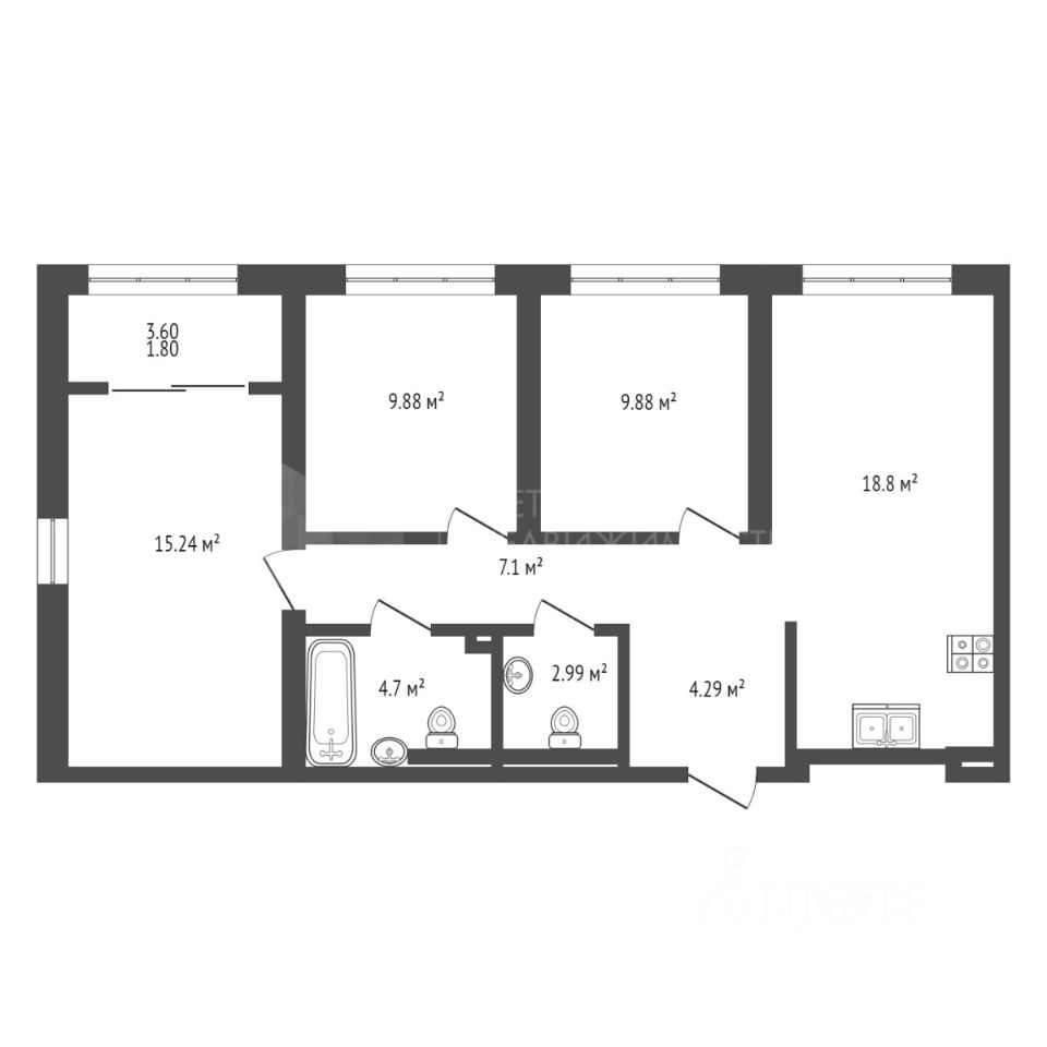В квартире останется встроенный шкаф купе, кухонный гарнитур и встроенная техника, остальная мебель по договорённости.