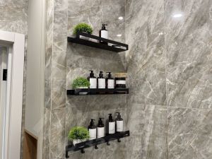 - Тёплый пол в ванной и качественная сантехника повышают уровень уюта.