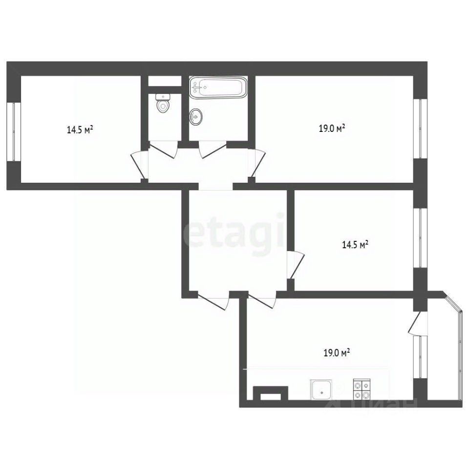 Все комнаты просторные, правильной формы. Просторная кухня площадью 20 квадратных метров - мечта любой хозяйки, оборудована современным кухонным гарнитуром. Санузел раздельный, облицован кафелем.