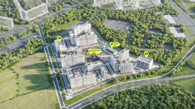 На территории комплекса находятся 2 8-ми этажных паркинга и более 1000 м/м на открытой парковке.