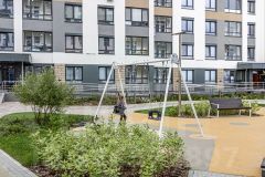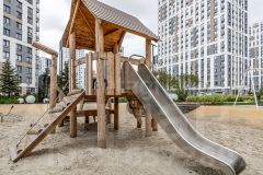 - Двор повышенного комфорта с уникальными развлечениями для детей: сухие фонтаны, игровые веревочные конструкции, скалодром, газон, песочница и резиновое покрытие — идеальное место, где дети предпочитают проводить время в красивом современном дворе, вместо гаджетов.