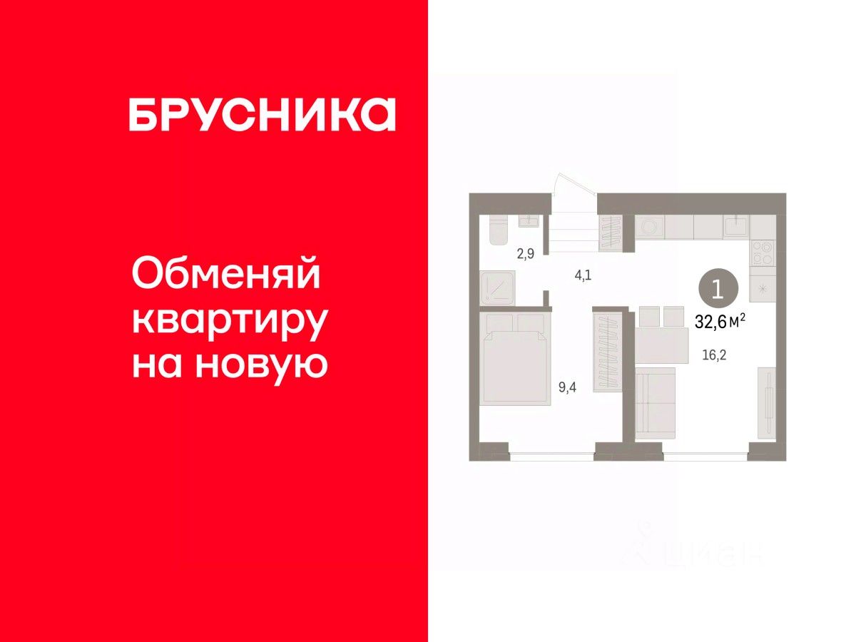 Квартира с кухней-гостиной и одной спальней в жилом районе "Речной порт". Особенности планировки: предчистовая отделка.