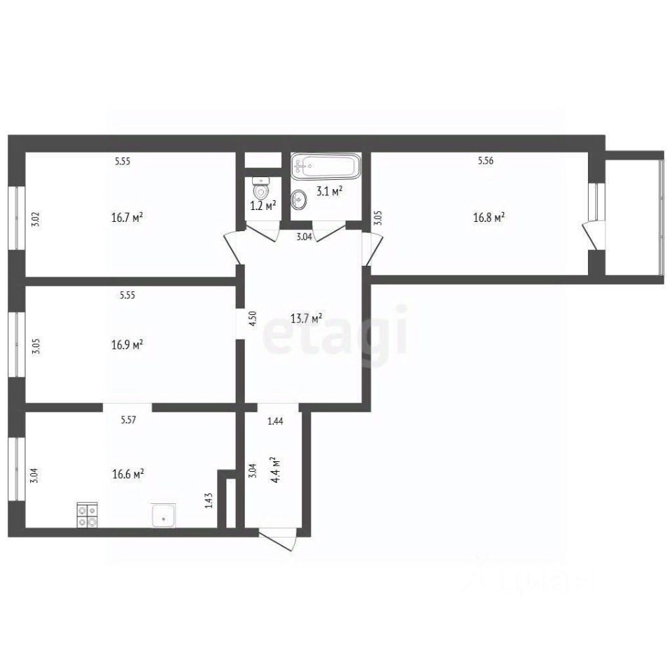 16,5 м²