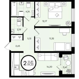 Продается 2-комн. квартира, 54,22 м²