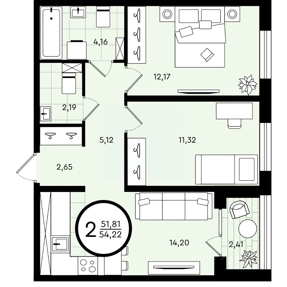 Общая площадь54,22 м²
