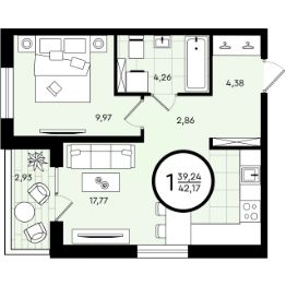 Общая площадь42,17 м²