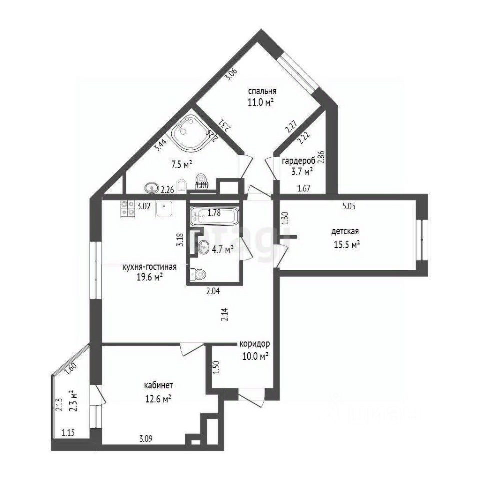 Предлагаю Вашему вниманию квартиру модного и удобного формата 3+ площадью 93 кв.м. в кирпично-монолитном доме!