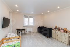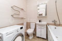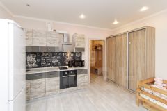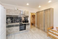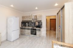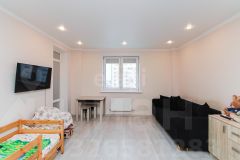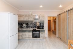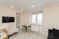 Площадь 33.8м2, просторный совмещенный санузел облицован кафелем, кухонный гарнитур с техникой, застекленный балкон.