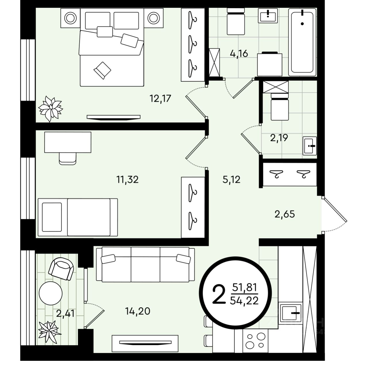 Общая площадь54,22 м²