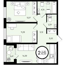 Продается 2-комн. квартира, 54,22 м²