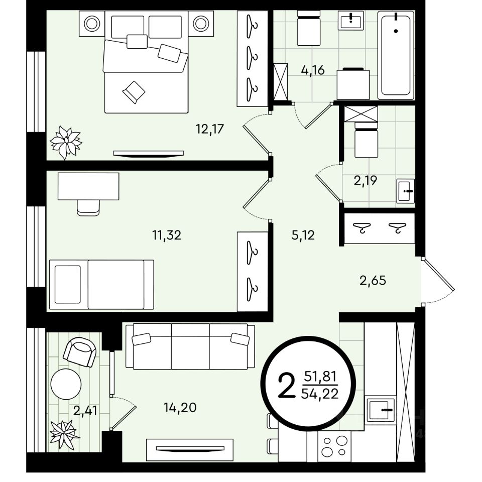 Общая площадь54,22 м²