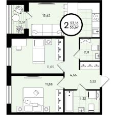 Общая площадь55,67 м²