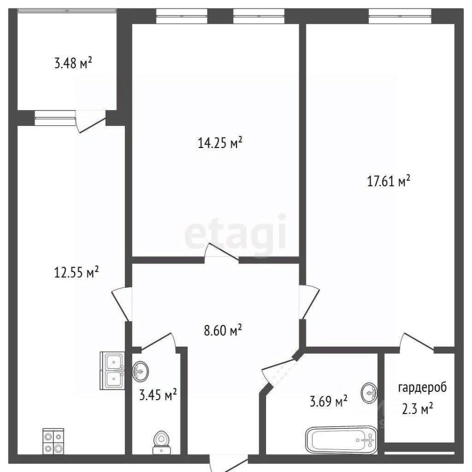 Планировка, созданная для семьи. Просторная кухня-гостиная, где так легко собираться всем вместе, с выходом на тёплую лоджию для утреннего кофе. Два санузла и большая гардеробная в спальне — продумано до мелочей.