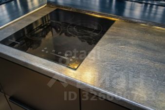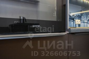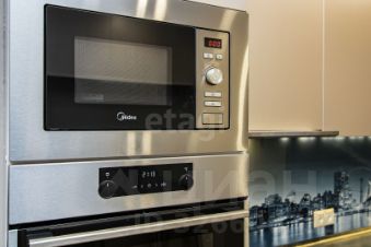 — Просторная кухня-гостиная, укомплектованная стильной мебелью и встроенной техникой.