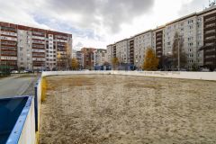 Во дворе детская площадка, каждую зиму здесь ёлка и каток!