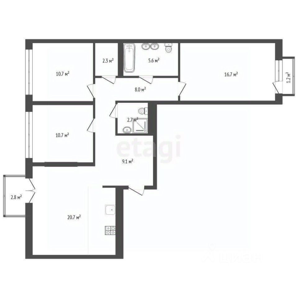 Просторная прихожая квадратной формы, где удобно расположить зоны хранения, ближайшая ко входу комната - кухня-столовая-гостиная почти 21 кв.м с витражным окном и французским балконом, гостевой сан.узел, по левую сторону две детских комнаты почти по 11 кв.м, по правую большая мастер-спальня 16.7 кв.м с витражным окном и ещё одним французским балконом, между комнатами располагается большой приватный сан.узел и гардеробная комната (она может стать так же хозяйственно-постирочной).