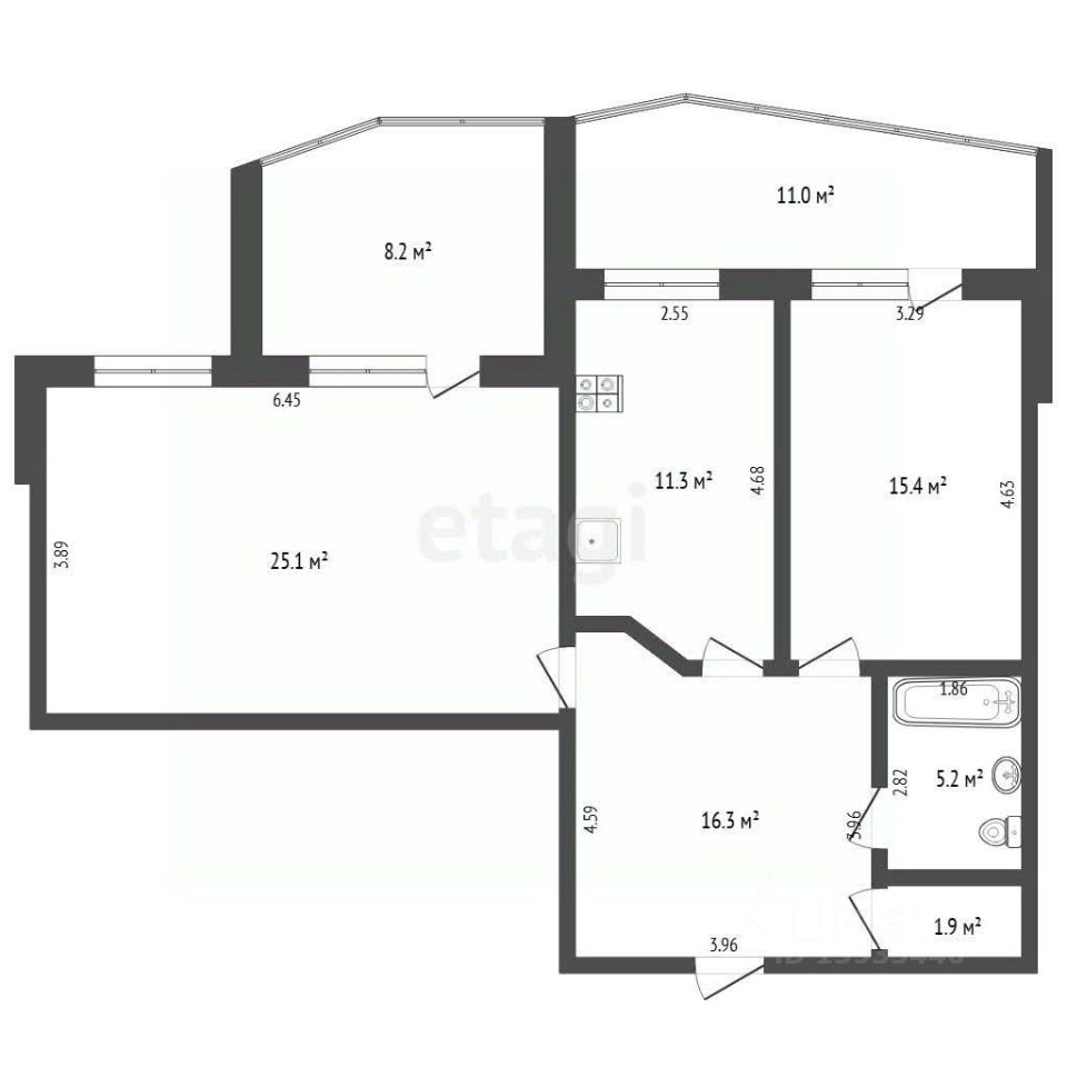 Планировка включает в себя кухню 11 кв, две отдельные комнаты (спальня и просторная гостиная 25 кв.м), гардеробную, санузел и два огромных застекленных балкона по 11 кв.м и 8.2 кв.м. При желании возможно сделать перепланировку из двухкомнатной в 3+!