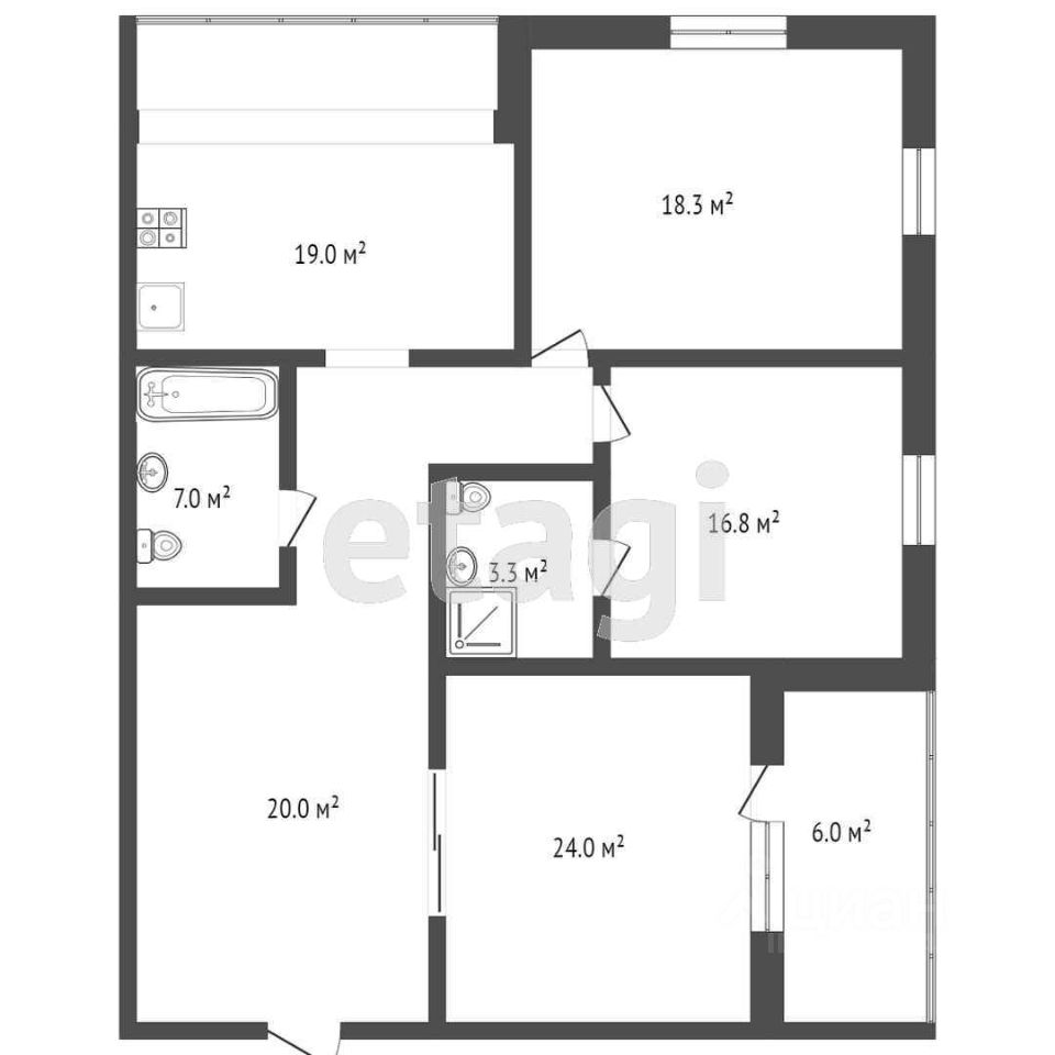 Три светлые комнаты с грамотной планировкой.