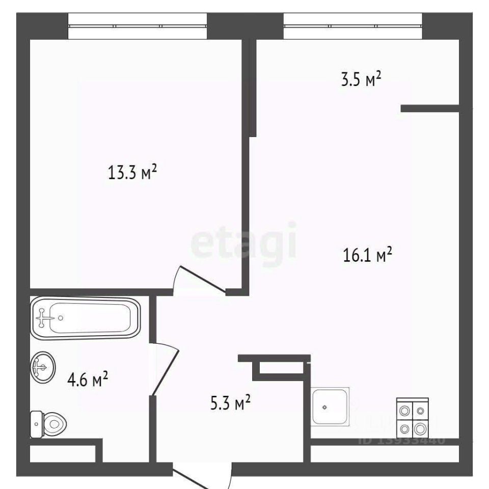 Просторная квартира 42.8кв.метра с удобной, гармоничной планировкой : кухня-гостиная 16.1кв.м))) с выходом на балкон 3.5 кв.м., спальня 13.3 кв., огромный санузел 4.6 кв.м., прихожая 5.3кв.м с нишей под большой шкаф по очень привлекательной цене!