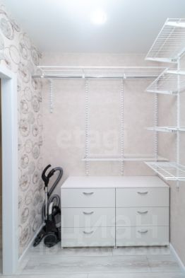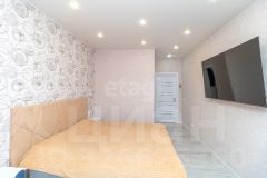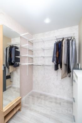 Мастер-спальня имеет собственную гардеробную с продуманными зонами хранения, что делает пространство максимально функциональным. Здесь же установлена кровать с подъёмным механизмом и большой телевизор.