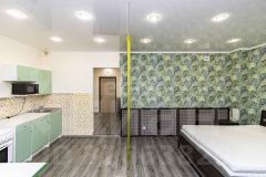 Площадь студии более 35,7 кв.м. без учета лоджии — она функциональна и отлично делится на зоны. Высокие потолки — 2.8 м добавляют ощущение воздуха и простора.