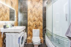 Квартира очень теплая, выполнен качественный ремонт. Санузел совмещенный, стены выложены керамогранитом, установлена душевая кабина.