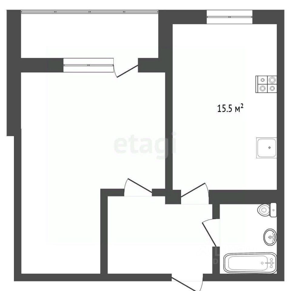 • Больгшая кухня 15,5 м² — для дружных завтраков и ужинов.