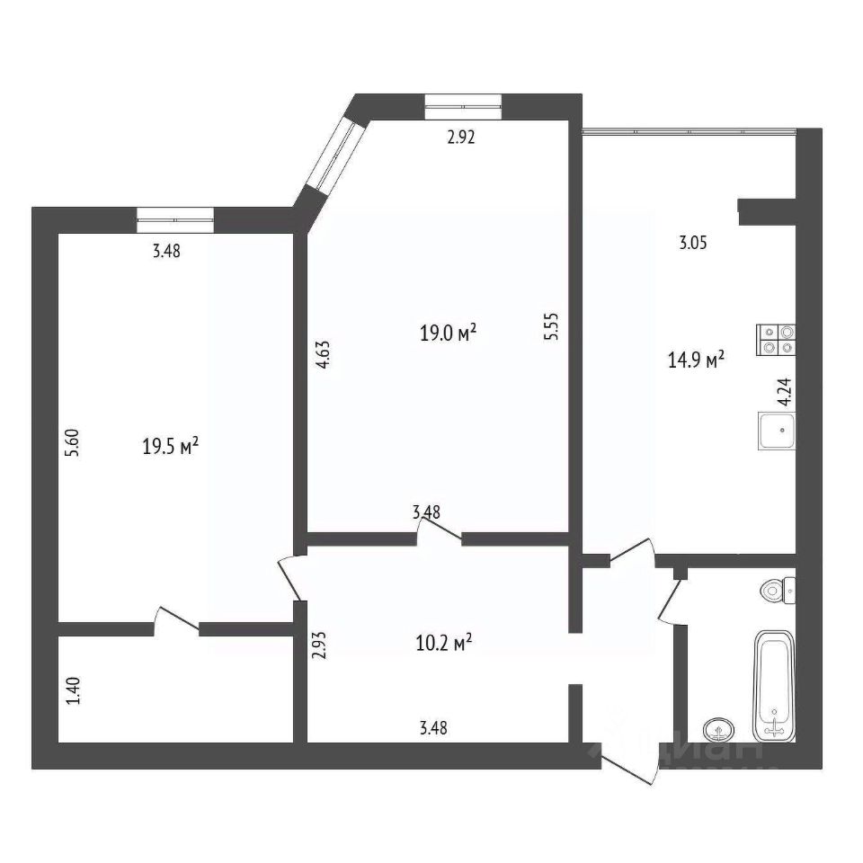 14,9 м²