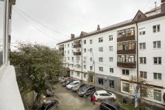 Придомовая территория благоустроена и ухожена, имеется детская площадка и парковочные места. Въезд во двор закрытый, сюда не смогут заехать посторонние машины.