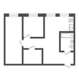 - Просторная кухня-гостинная с двумя окнами, 2 отдельные спальни, большая гардеробная, сомещенный санузел