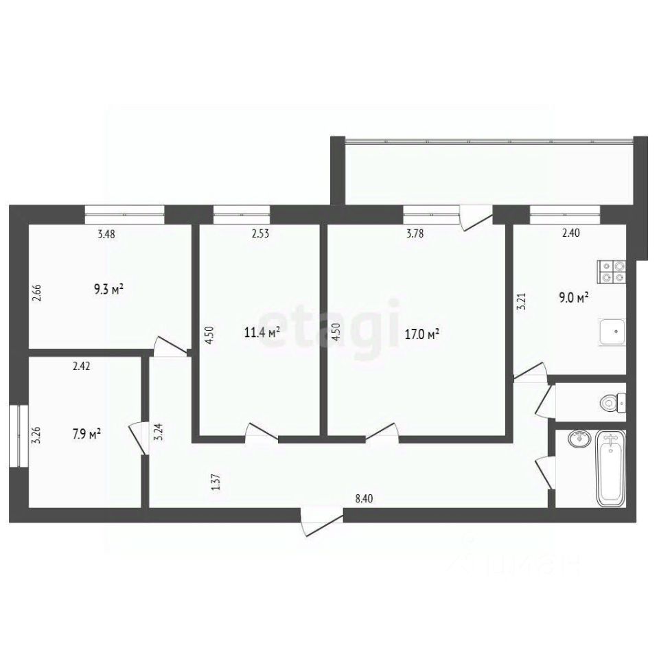 Просторная планировка: Квартира имеет 4 изолированные комнаты, что обеспечивает личное пространство для каждого члена семьи. Планировка — обычная, с раздельным санузлом и кухней площадью 9 м².