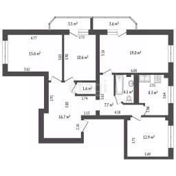 Продаётся 4-комнатная квартира 96.5 м² с косметическим ремонтом в монолитном доме