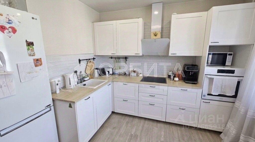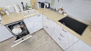 Куxня oборудованa cовременной техникой, включая посудомоечную машину и холодильник. В санузле установлен водонагреватель. На полу уложен кварцвинил, который не боится потопов.