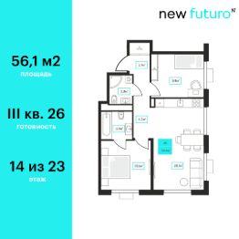 Продаётся 2-комнатная квартира в строящемся доме (Дом 6к1), срок сдачи: III-кв. 2026, общей площадью 54.4 кв.м., на 15 этаже. Новый жилой комплекс "Futuro" от застройщика "newton" расположен в г. Тюмень на Ставропольской улице.