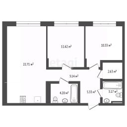 2 отдельные комнаты, раздельный санузел и гардеробная.