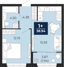 Однокомнатная квартира в ЖК "Беринг" на 1 этаже. Квартира без отделки, после оформления собственности можно делать ремонт. Общая площадь: 38.94 кв.м., жилая: 12.19 кв.м., площадь просторной кухни-столовой: 15.93 кв.м. Все окна выходят на одну сторону. В квартире одна лоджия, один совмещенный санузел. Высота потолков 2.75 м.