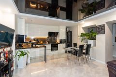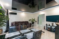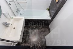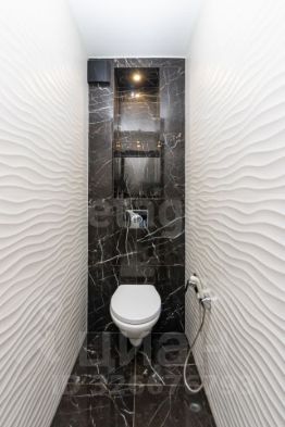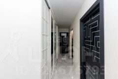 раздельный санузел, выполненный из испанского керамогранита, мойка в ванной мрамор. В коридоре большой, вместительный встроенный шкаф МДФ. В спальне и гостиной выводы под кондиционеры. Межкомнатные двери стекло чёрный глянец. Видео домофон. В подарок идет большая кладовая.