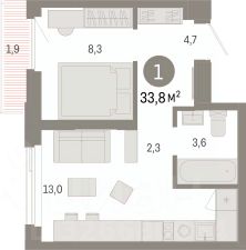Продается однокомнатная квартира от застройщика с предчистовой отделкой в ЖК "Зарека" на 12 этаже. Общая площадь: 33.82 кв.м., жилая: 8.3 кв.м., площадь просторной кухни-гостиной: 13 кв.м. Все окна выходят на одну сторону. В квартире один балкон, один совмещенный санузел. Высота потолков 2.7 м.