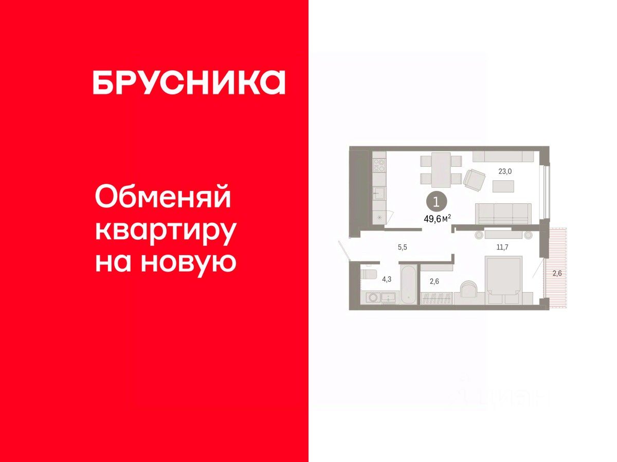 Квартира с кухней-гостиной и одной спальней в Октябрьском на Туре. Особенности планировки: балкон, вид во двор, предчистовая отделка.