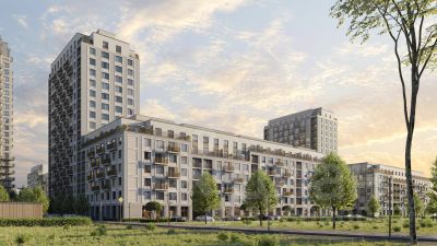 По мастер-плану здесь будет восемь домов. Ядро застройки составляют замкнутые кварталы переменной этажности. Их высотность понижается по мере приближения к реке. На углах участка мы разместили башни-доминанты.