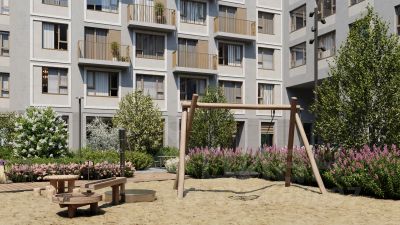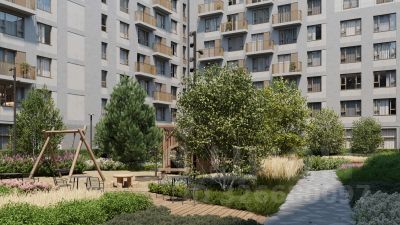Смысловая ось квартала — широкая главная улица с высаженными вдоль неё высокими деревьями. Они создают тень и работают как шумо- и пылезащитные экраны. Это место сосредоточения основных пешеходных и транспортных потоков, на сторону которых мы ориентировали большинство коммерческих помещений. Отсюда жители могут свернуть на тихие соседские улицы и попасть на внутриквартальную площадь — ещё одну точку притяжения. #26dv7l