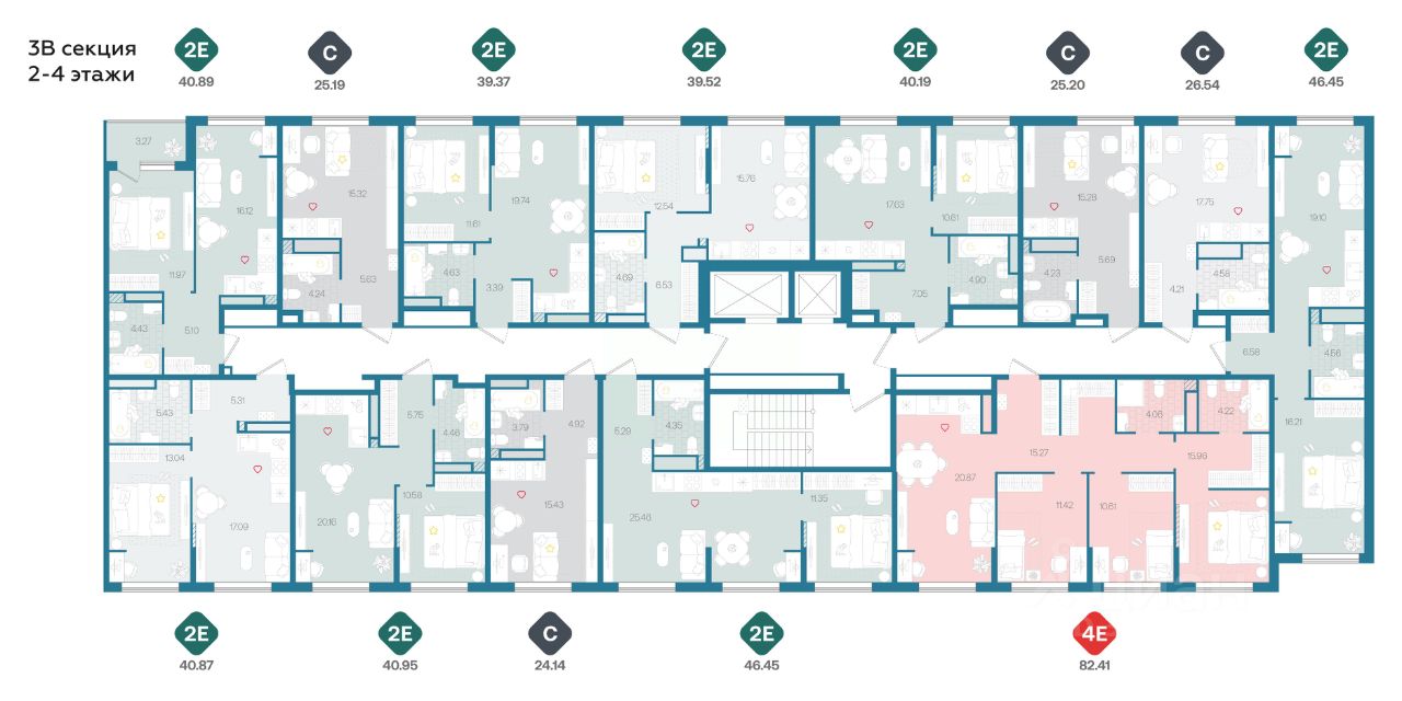 Двухкомнатная квартира с большой кухней более 25м², отдельной спальней с нишей для хранения и просторным санузлом. При входе удобная прихожая с нишей для вместительного шкафа.