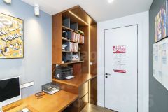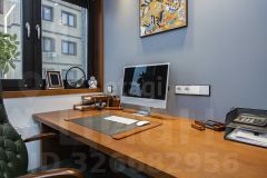 Мебель в кабинете и кухне-гостиной из шпона дуба, что подчеркивает стиль и статусность интерьера.