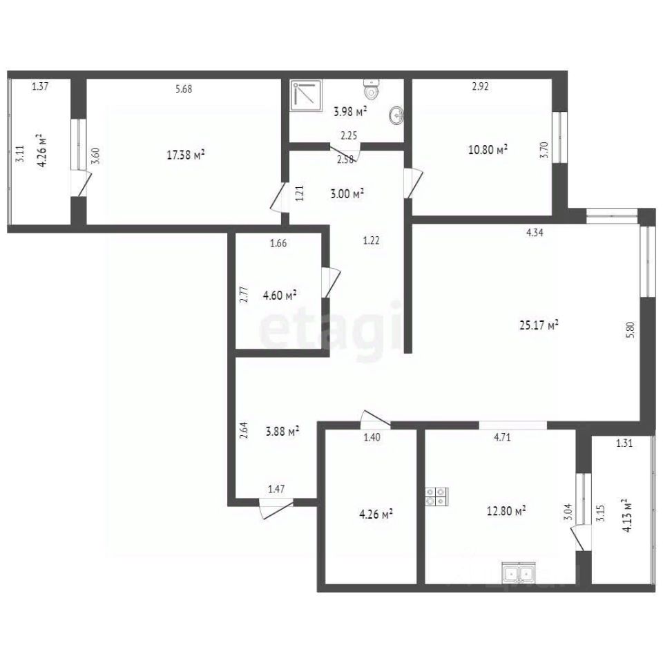 * Комнаты: Три светлые комнаты правильной формы.