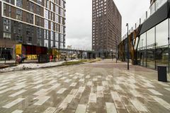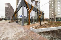 Благоустройство территории выполнено с максимальным вниманием к деталям. Просторные прогулочные аллеи, "парящие дворы" на стилобате и крыше с зелеными зонами для отдыха и занятий спортом обеспечивают идеальные условия для активной жизни. На первом этаже комплекса предусмотрены все необходимые удобства: колясочная, зона для хранения спортивного инвентаря, лапомойка для домашних питомцев и уютная зона ожидания гостей, где их встретит приветливый консерж.
