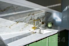 Проект распланирован в функциональный формат 2+. Центром притяжения является просторная кухня-гостиная, где возможно принимать гостей и собираться у телевизора всей семьей. Помимо нее имеется взрослая спальня и кабинет, который вполне можно распланировать ка детскую.