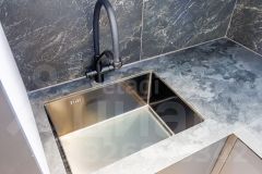 - современная кухонная зона со скрытой раковиной и практичной суперпрочной столешницей (компакт плита);